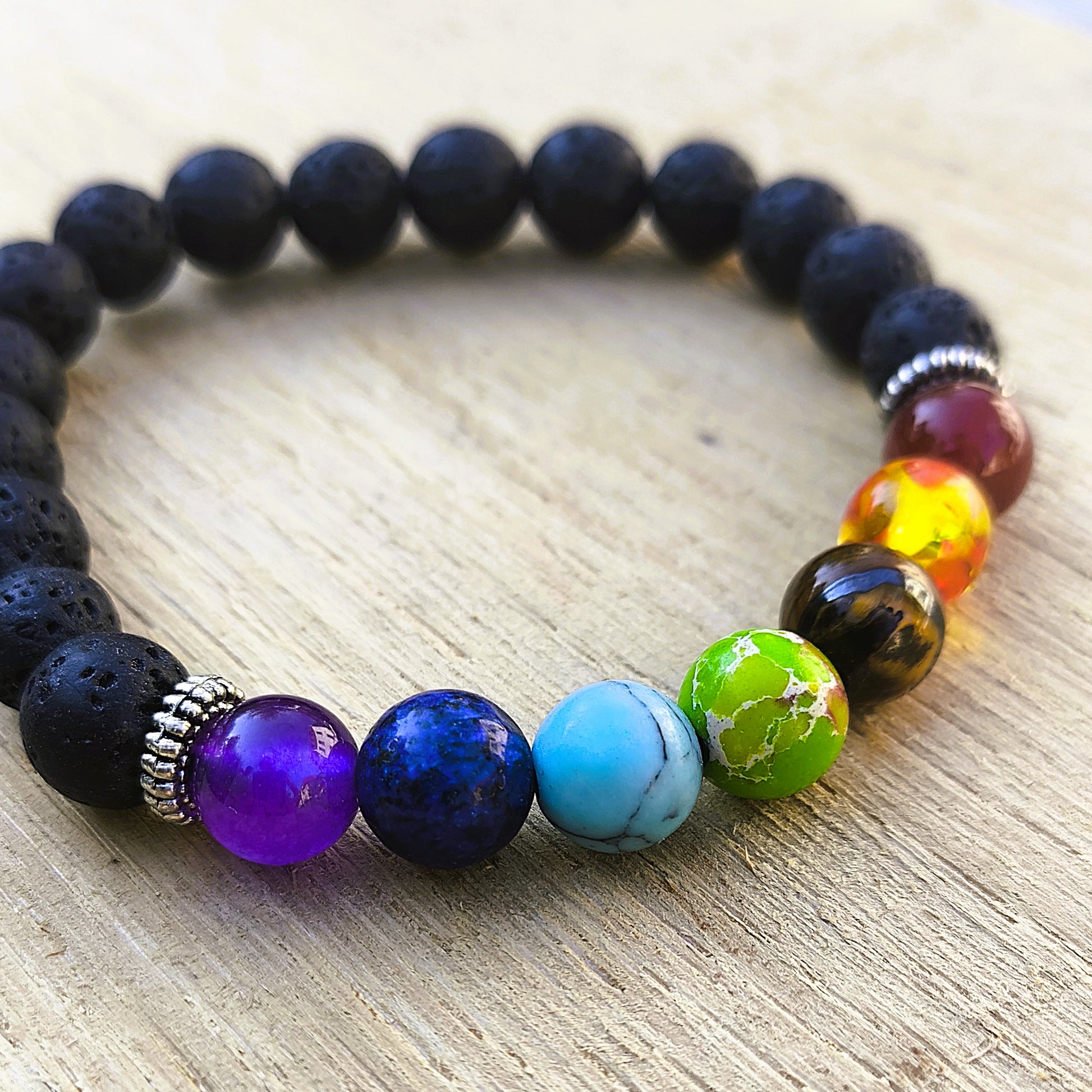 Ein Armband, das mehr ist als Schmuck: Dieses handgefertigte Energiearmband vereint kraftvolle Chakrensteine mit erdenden Vulkanperlen – für mehr Achtsamkeit, Harmonie & Energie im Alltag.