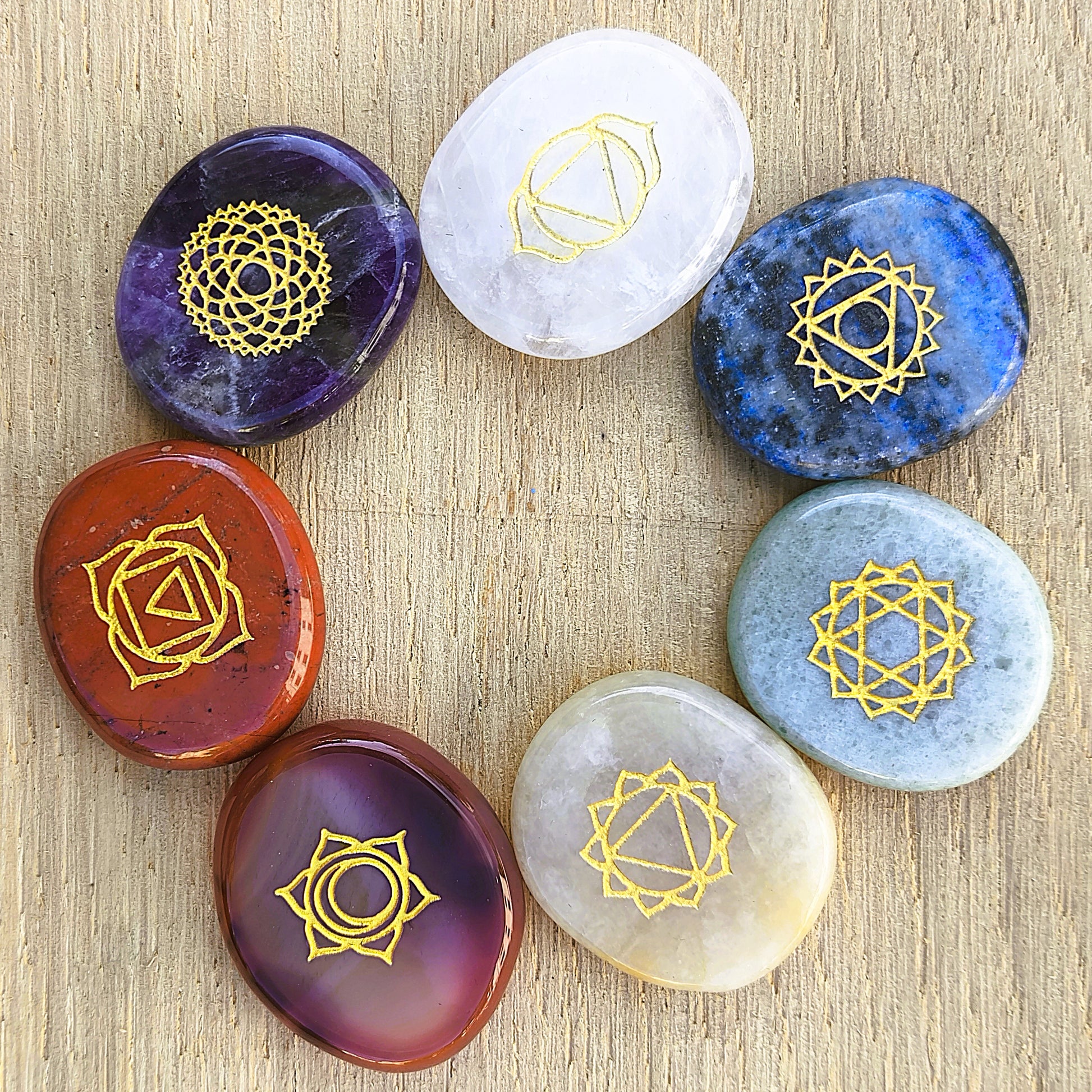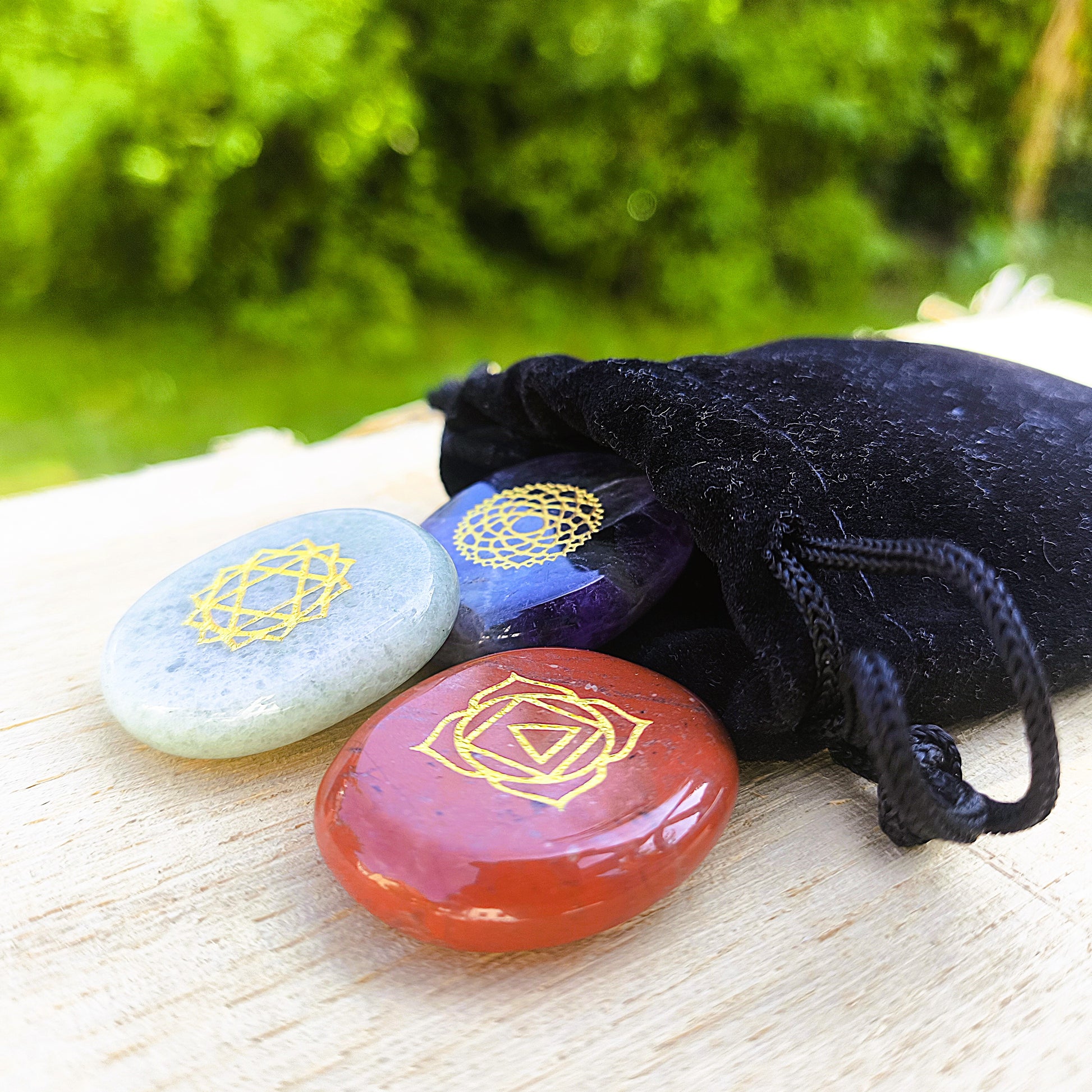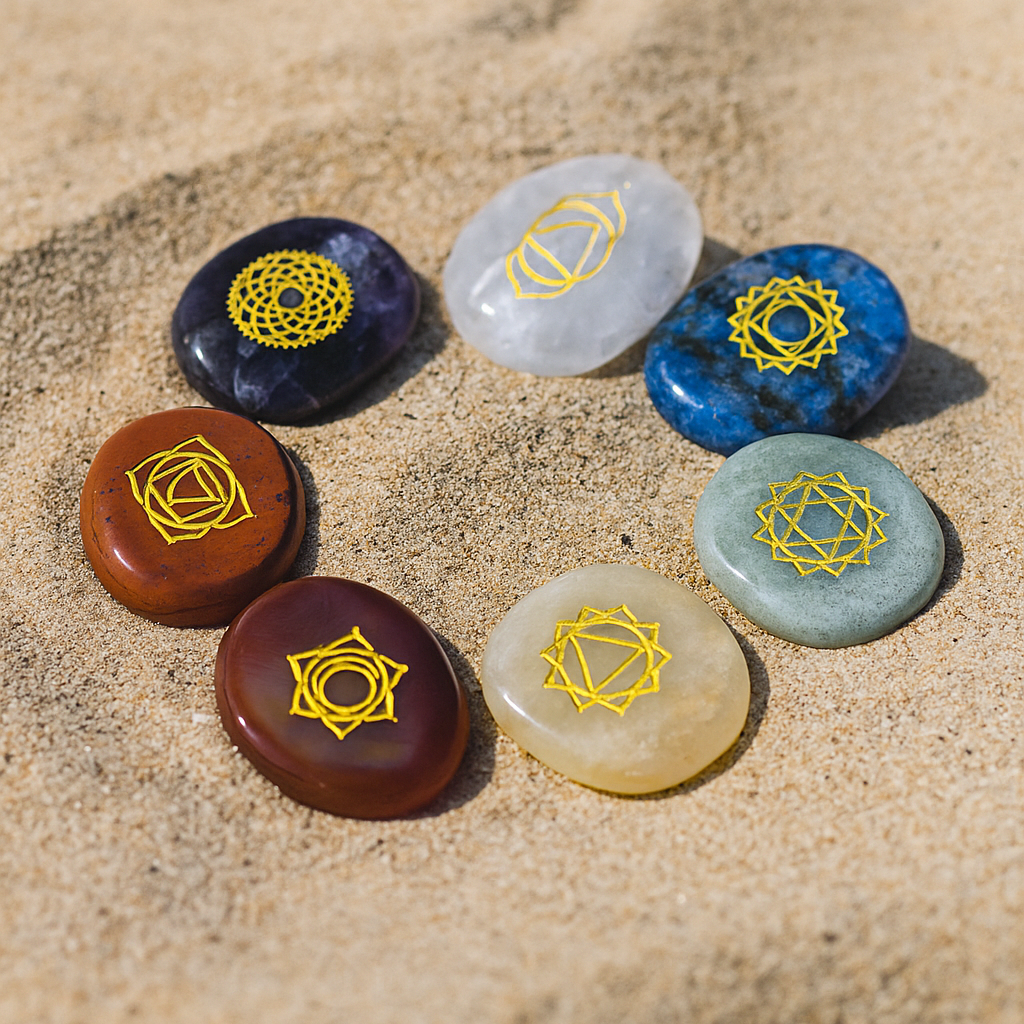 Chakra-Stein-Set „Goldene Mitte“ – Graviert & energetisch