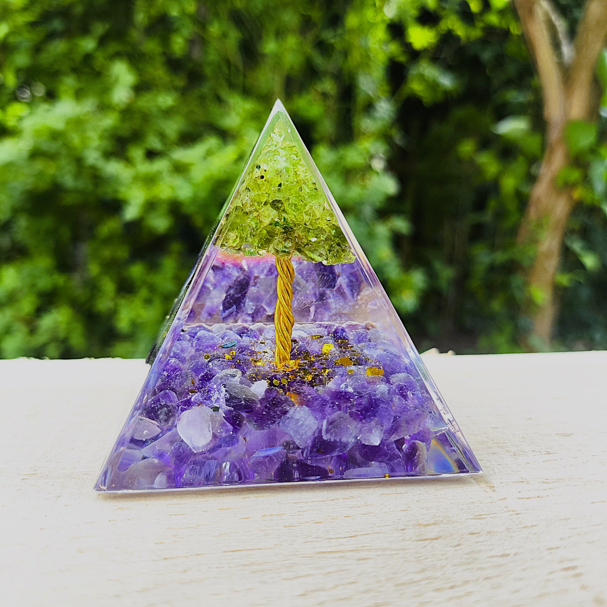 Orgon wird als Lebensenergie verstanden, die Harmonie und Schutz schenken soll. In der Kombination mit dem Lebensbaum wirkt die Pyramide wie ein Anker zwischen Himmel und Erde – als sanfter Impuls, sich zu zentrieren, zu wachsen und sich dem Fluss des Lebens hinzugeben.